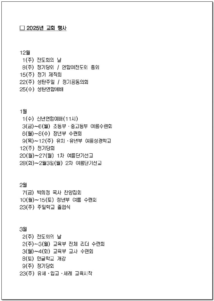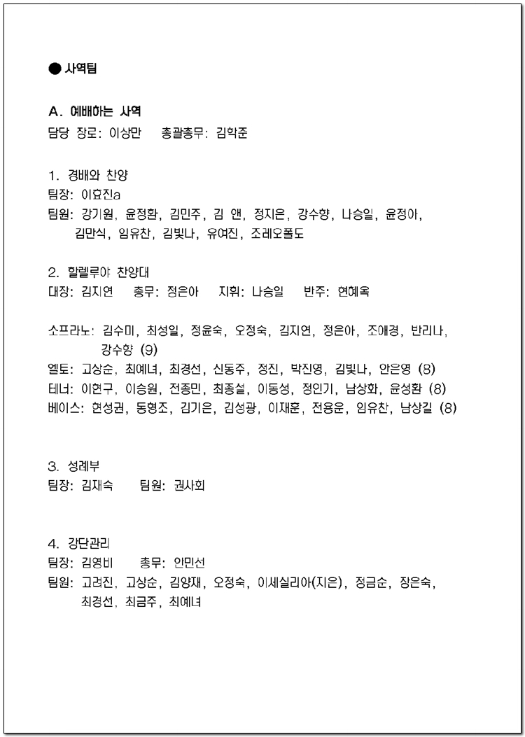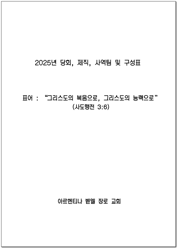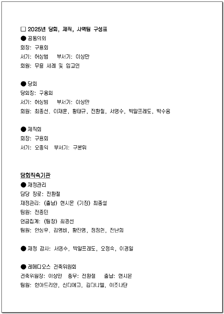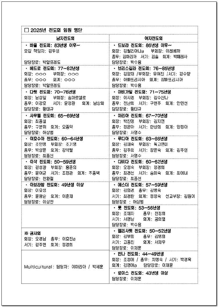 2025년 당회, 제직, 사역팀 및 구성표