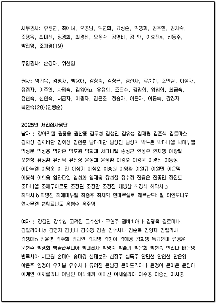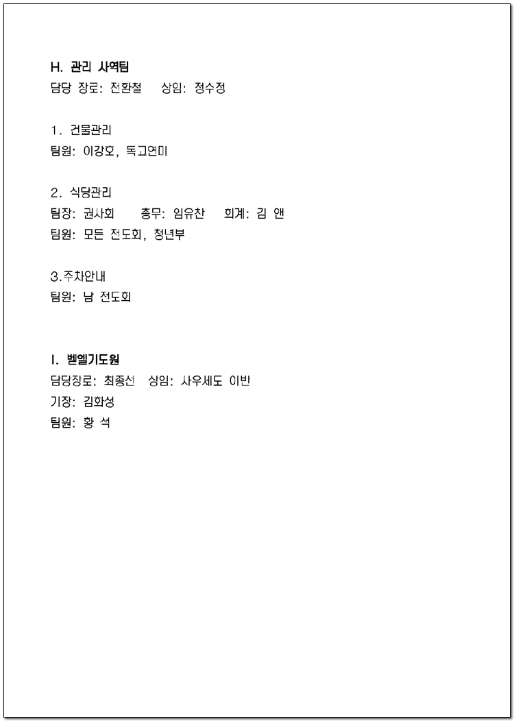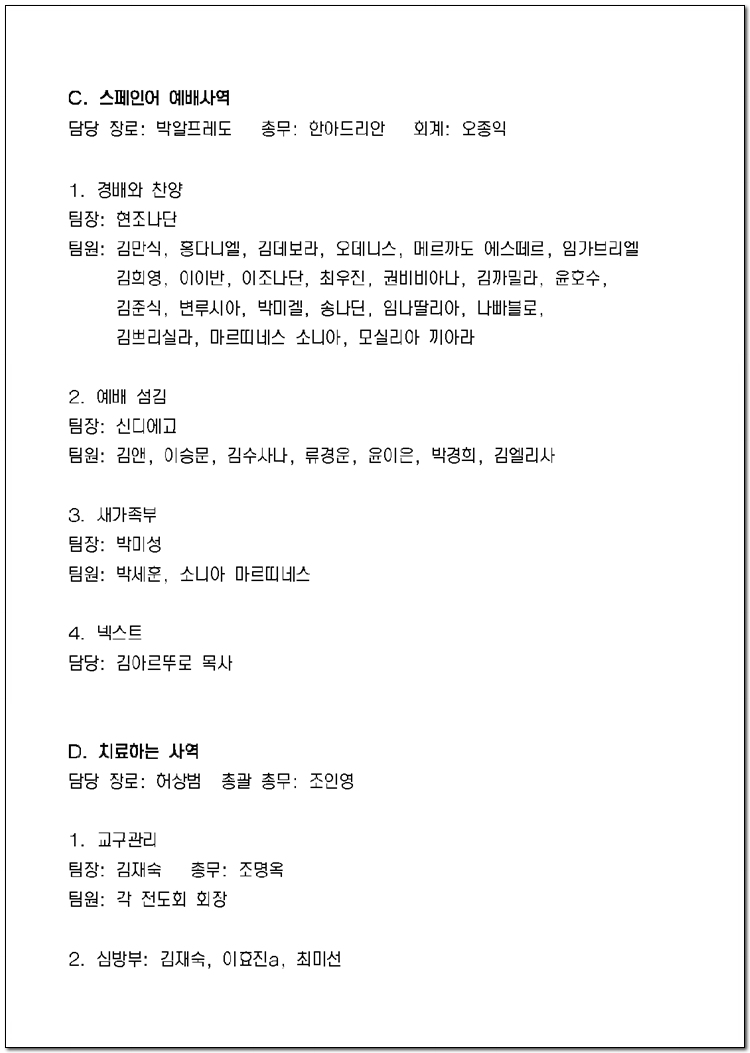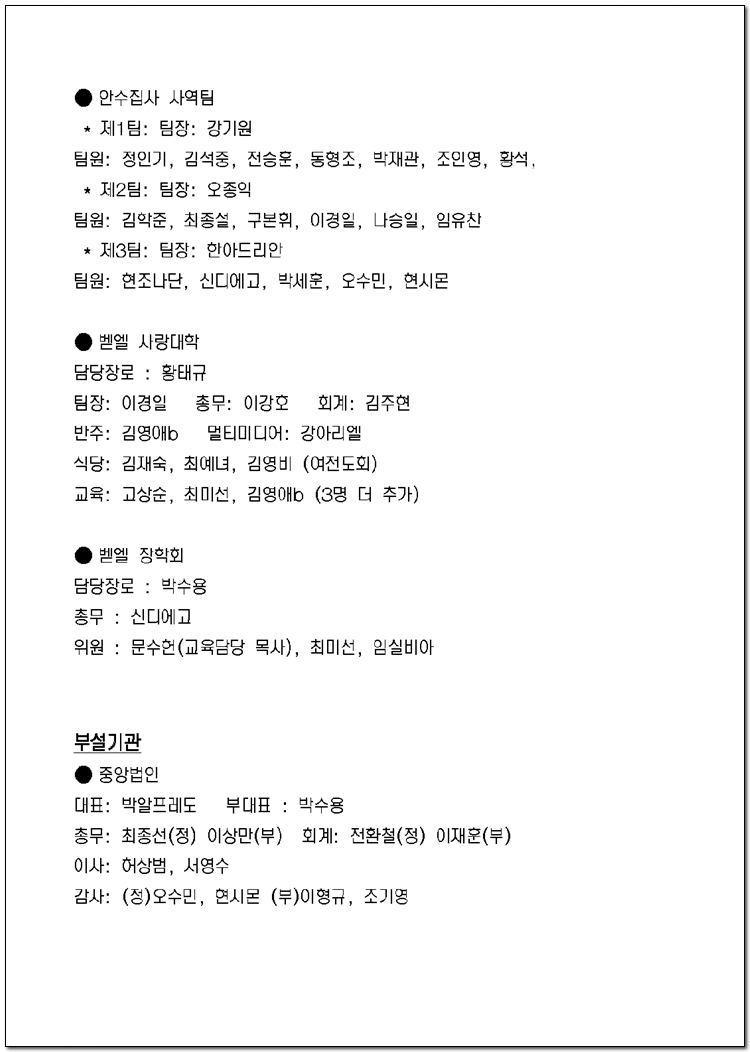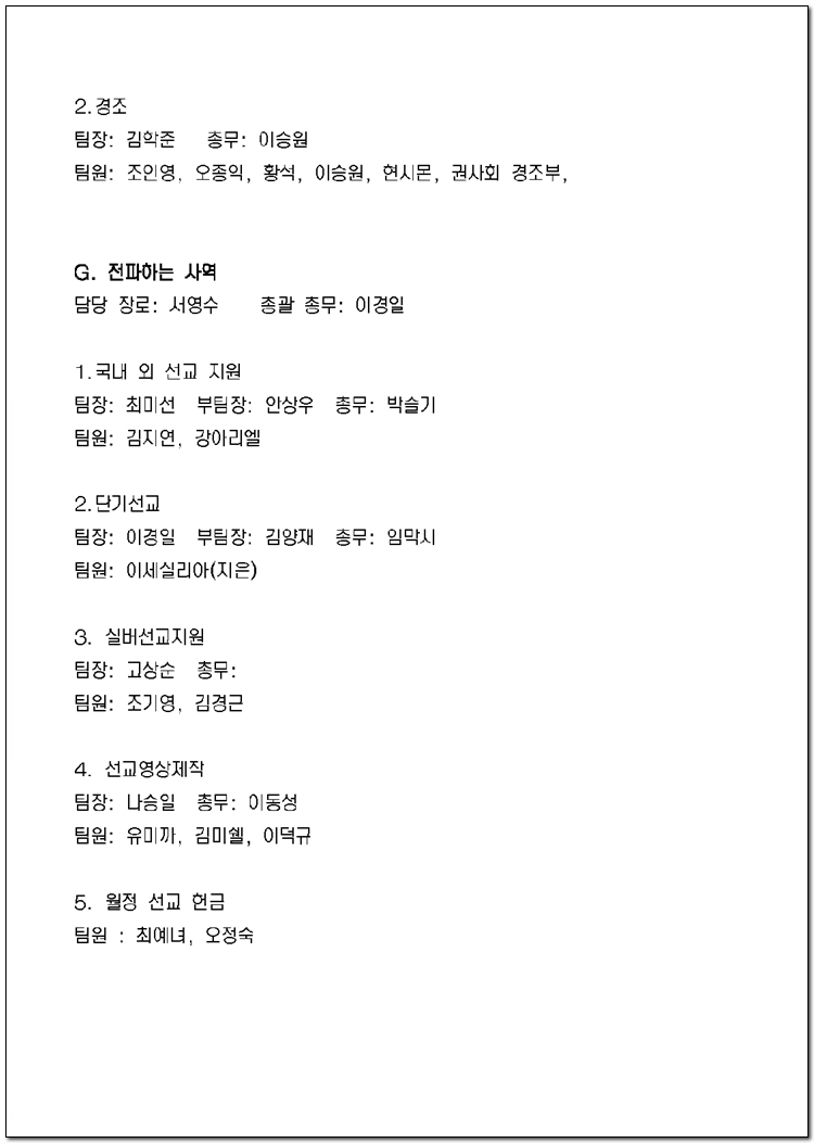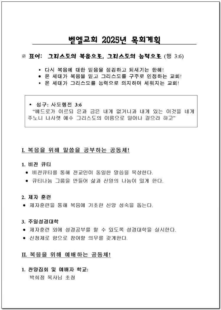 2025년 당회, 제직, 사역팀 및 구성표