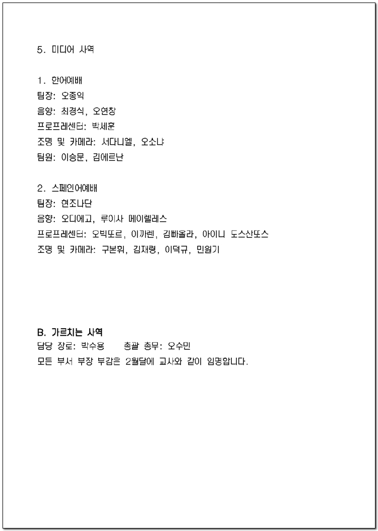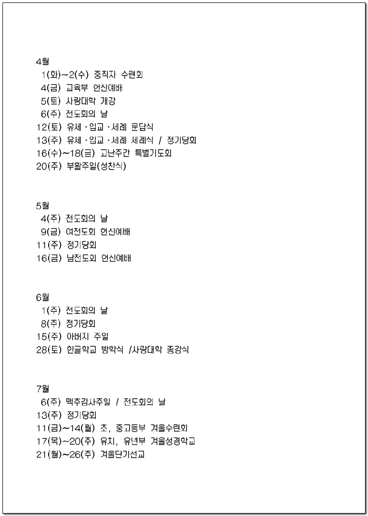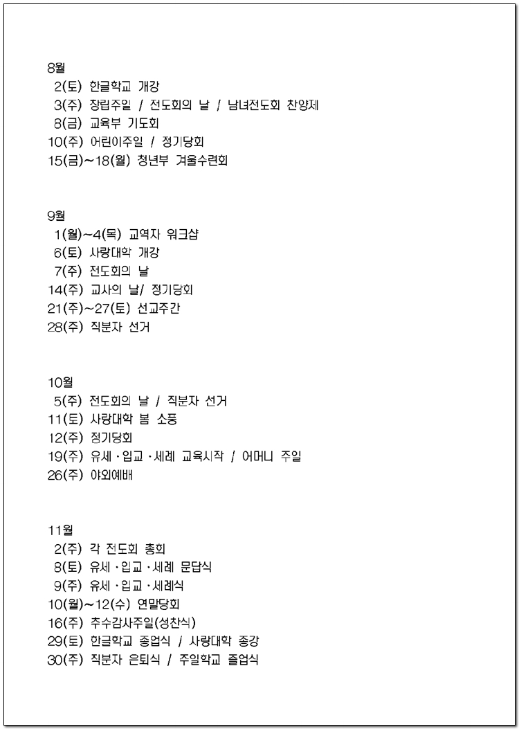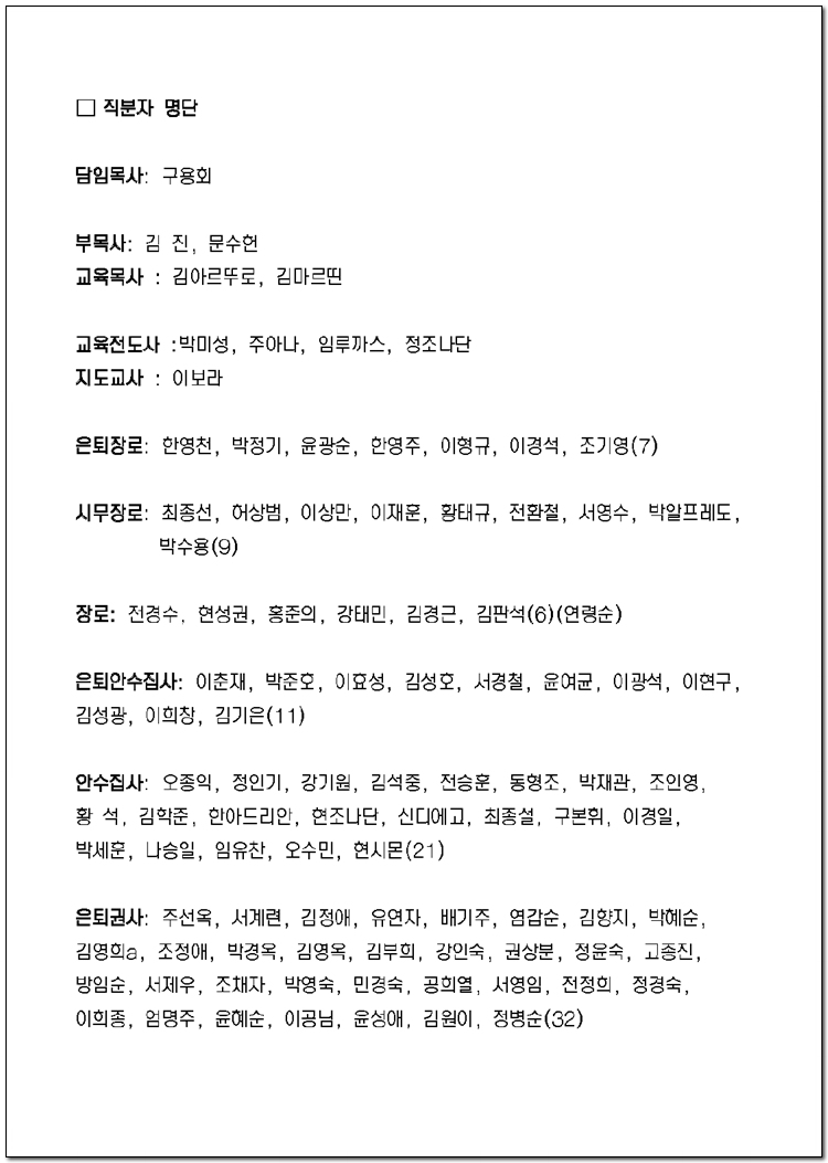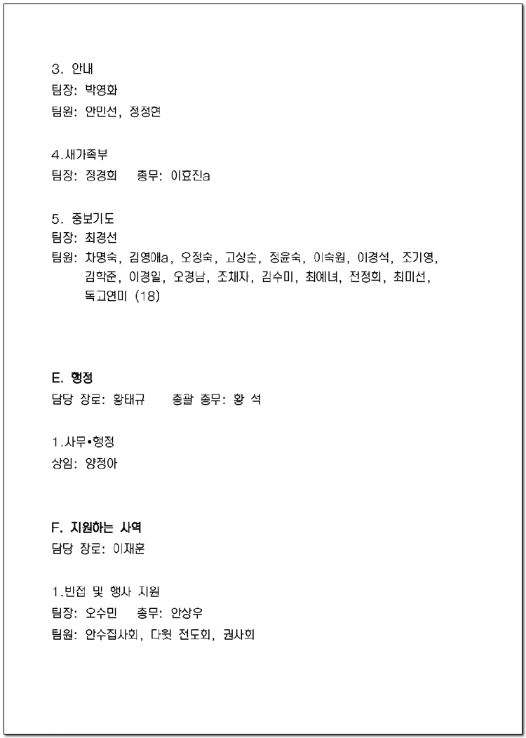 2025년 당회, 제직, 사역팀 및 구성표