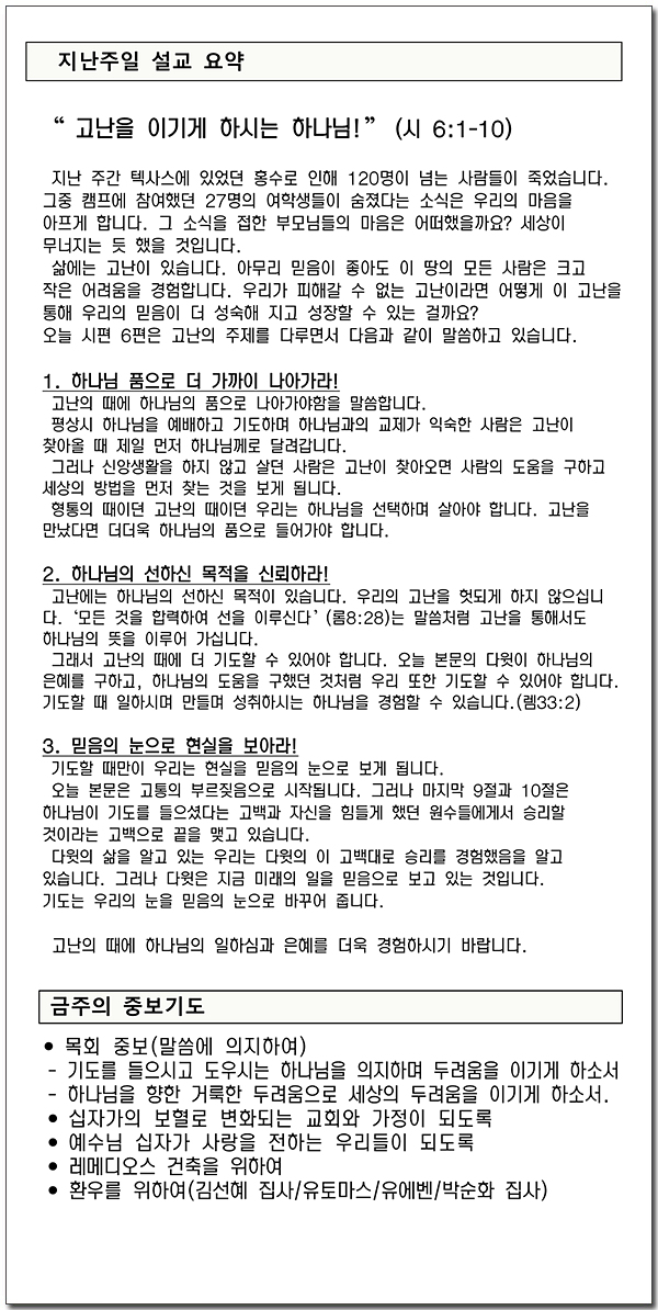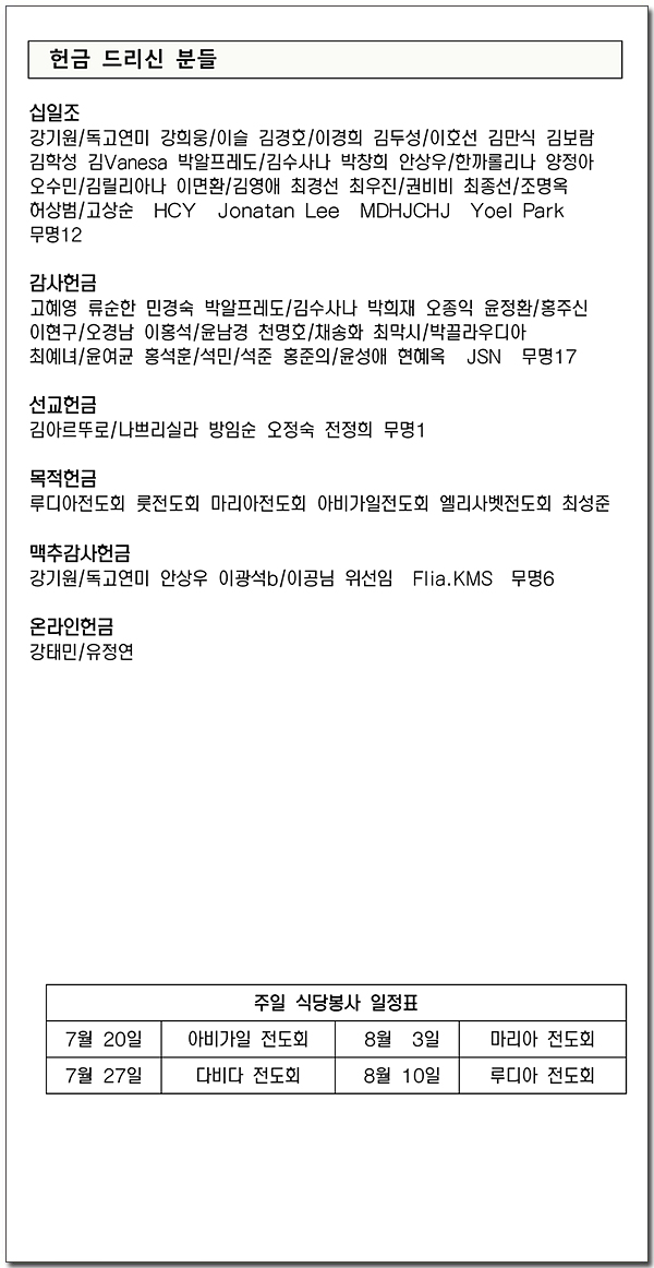 2025년 7월 20일 고 송영수 집사 장례 주보
