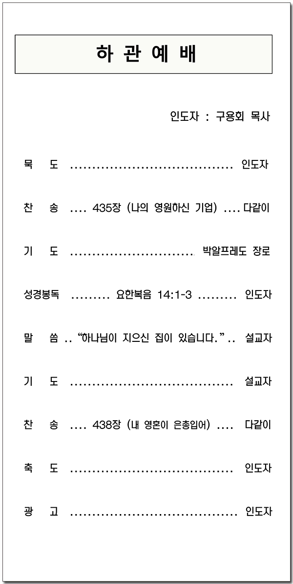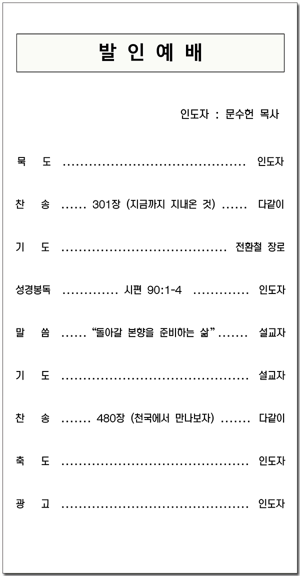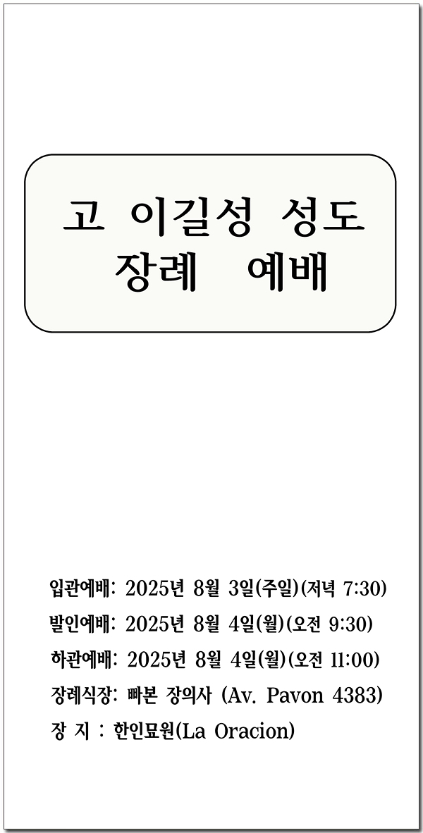 2025년 8월 03일 고 이길성 성도 장례 주보