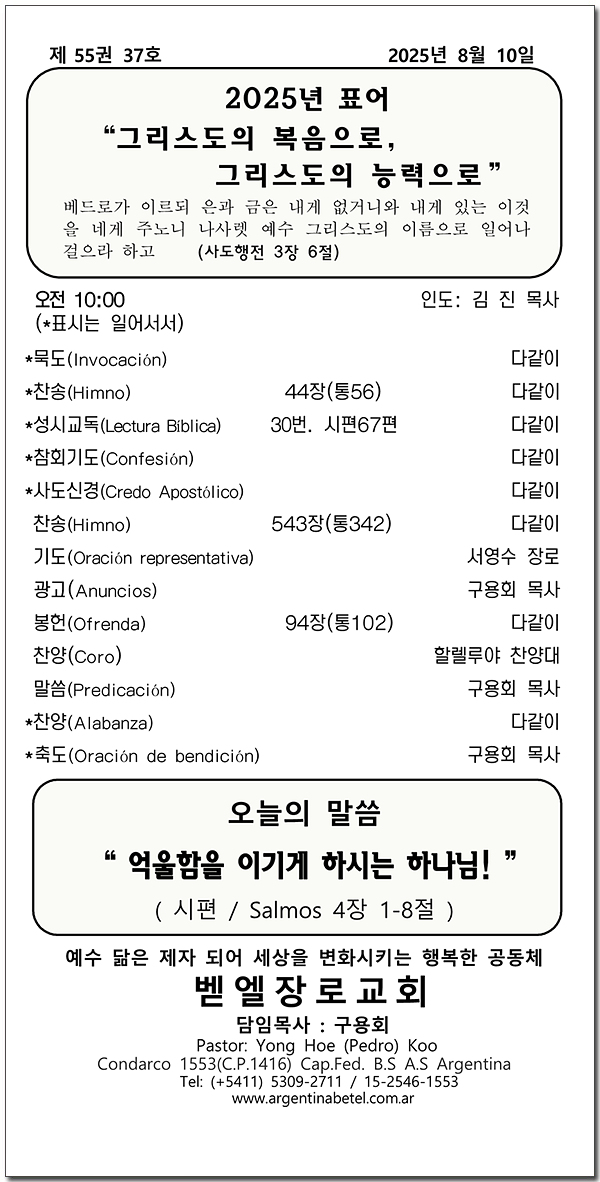2025년 8월 23일 벧엘 찬양제 주보