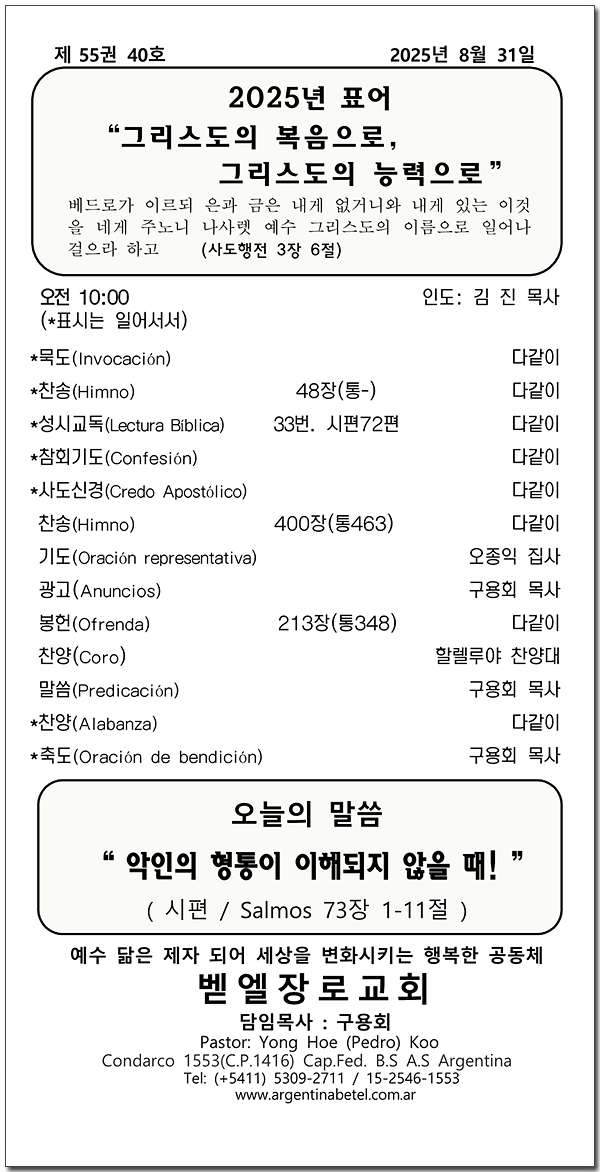 2025년 8월 23일 벧엘 찬양제 주보