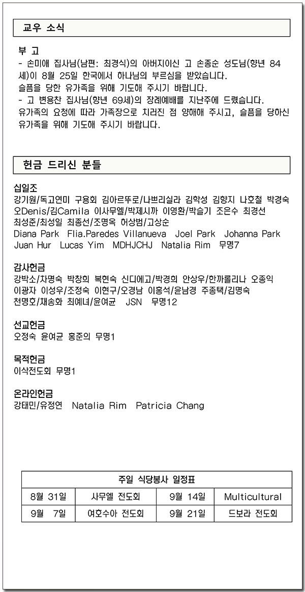 2025년 8월 31일 주보
