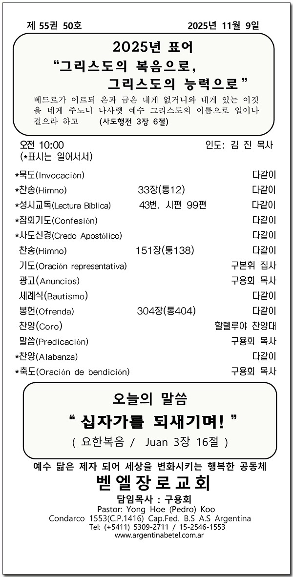 2025년 9월 28일 고 최철수 집사 장례 주보